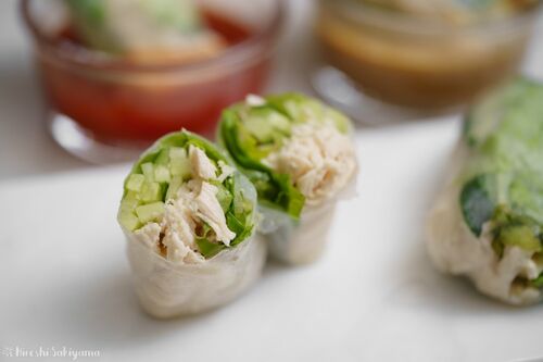 こんにちは、嵜山拓史(さきやまひろし)(@sakihirocl)です。今回はヘルシーでサラダ感覚で食べられる、鶏むね肉ときゅうりの生春巻きのレシピ! 材料 ・鶏むね肉 1枚 ・塩 少々 ・きゅうり 1本 ・レタス 数枚 ・生春巻きの皮 8枚くらい・スイートチリソース …